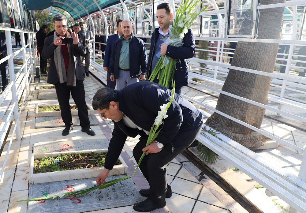 به گزارش روابط عمومی شرکت آب منطقهای فارس، صبح یکشنبه 12 بهمن و در آغازین روز از ایامالله دهه مبارک فجر انقلاب اسلامی، مدیرعامل، با حضور در گلزارشهدا و نثار گل بر قبور مطهر، پیمان خود بر سر تداوم خدمت جهادی را با شهدا، تجدید کردند.